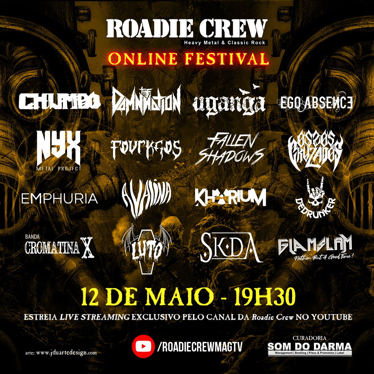 A revista Roadie Crew, em parceria com a produtora Som do Darma, apresentam nesta sexta-feira, dia 12 de Maio, às 19h30, a 38ª edição do "Roadie Crew - Online Festival".