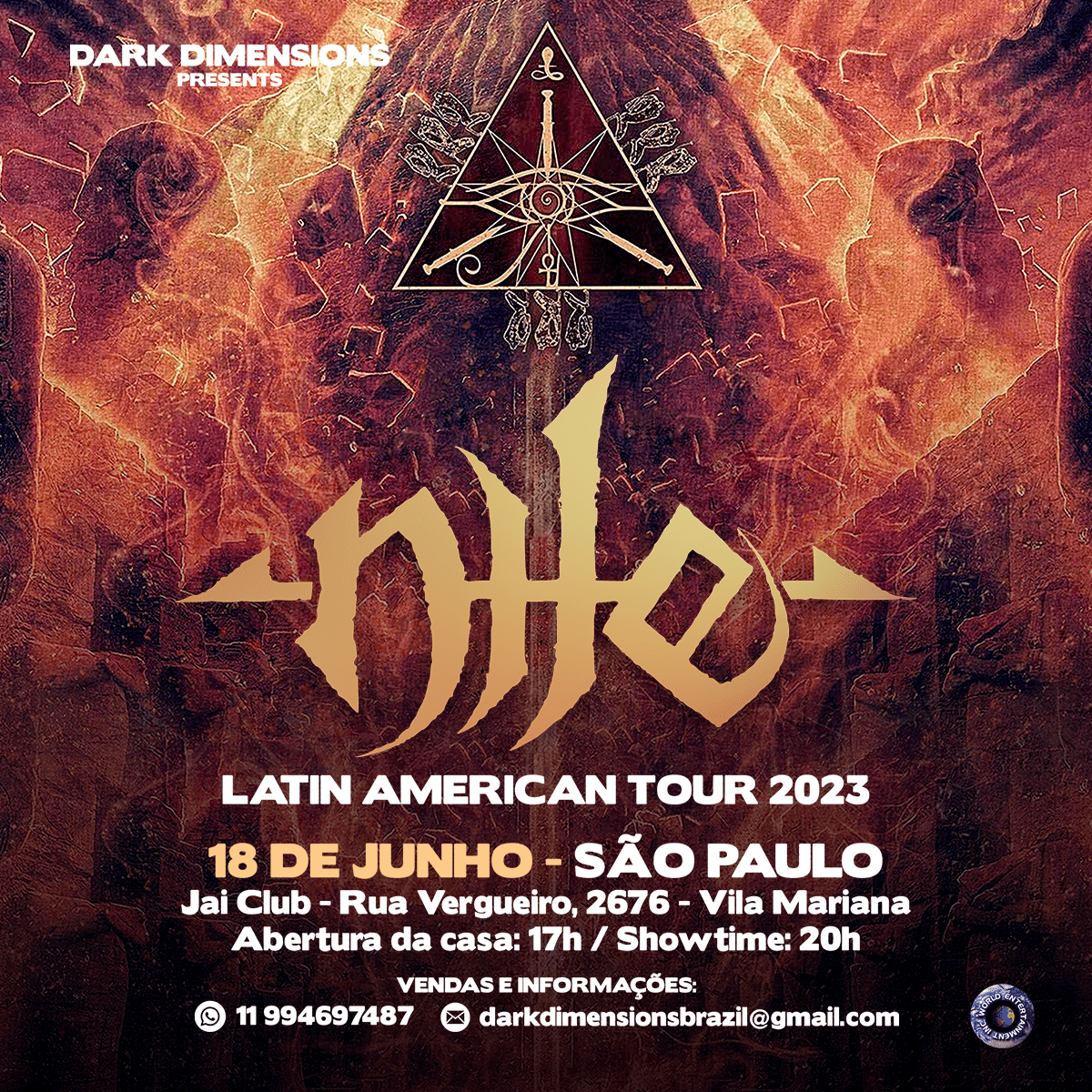 SERVIÇO: NILE EM SÃO PAULO Data: 18 de Junho (Domingo) Local: Jai Club Endereço: Rua Vergueiro , 2676 – Vila Mariana, São Paulo/SP Produção: Dark Dimensions (darkdimensionsbrazil@gmail.com) Assessoria de Imprensa: JZ Press (jzpress@metalnalata.com.br) Abertura da casa: 17h Início do show: 20h Sem bandas de abertura