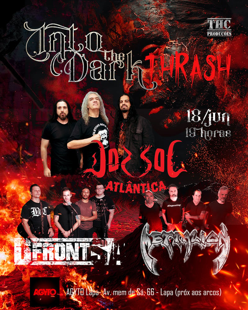 DORSAL ATLÂNTICA Fundada no Rio de Janeiro, em 1981, é um das pioneiras da cena do Heavy/Thrash Metal brasileiro, sendo reconhecida como grande influência para muitas outras bandas, dentro e fora das fronteiras brasileiras, como, por exemplo, o Sepultura, Korzus e o Ratos de Porão. Sua sonoridade praticamente inrotulável, trazendo todo tipo de Rock, peso, sujeira, temáticas políticas explícitas, foi criada a partir da música armorial, fundindo o Rock, MPB (música pesada brasileira, nas palavras do criador Carlos “Vândalo” Lopes, como era ‘carinhosamente chamado nos anos 80), Hardcore, Metal, Thrash Metal, Hardcore, ritmos brasileiros, indígenas, nordestinos, etc. Possui em sua discografia verdadeiras obras que definem o que o metal/rock veio a ser nas décadas seguintes. “Ultimatum” (1985) – split com a banda Metalmorphose -, “Antes do Fim” (1986), “Dividir e Conquistar” (1988), “Searching For The Light” (1990), dentre outros, são até hoje reverenciados por 9 a cada 10 fãs de música pesada nacional. Após muitos álbuns e algumas pausas na carreira, em 2012, Carlos Lopes retornou com o Dorsal Atlântica para o lançamento do álbum “2012”, através do financiamento coletivo, forma que trouxe ao mundo, também, os álbuns seguintes: “Imperium” (2014), e os excelentes “Canudos” (2017) e “Pandemia” (2021), sendo esses últimos quatro lançamentos o material mais evidente nos shows que a banda vem realizando esporadicamente. Atualmente, a Dorsal Atlântica é formada por Cláudio Lopes (vocal/guitarra), Alexandre Castellan (baixo) e Léo Pagani (bateria). METRALION Formada em 1986 na cidade do Rio de Janeiro/RJ, a também veterana banda de Heavy/Thrash Metal tem em suas fileiras dois álbuns e um EP, “Quo Vadis” (1987), “A Mosh In Brazil” (EP/1989) e “Requiem For Society” (2021). Após três décadas de hiato, retornou às atividades definitivamente no fim de 2020, lançando o excelente segundo álbum da carreira, “Requiem for a Society”, em 2021, que levou o quarteto a uma turnê pelo nordeste, sul e sudeste, além de um show no Paraguai, pela primeira vez na carreira tocando no exterior. Sua sonoridade traz a agressividade do Thrash Metal (Testament, Exodus e Sepultura), a melodia do Heavy Metal tradicional (Judas Priest, Saxon e Angel Witch) e a sujeira do Motörhead, por exemplo. A atual formação da banda conta com Ricardo ‘Rica’ Fonseca Lima (vocal), Fernão Carvalho (guitarra), Gustavo Bastos (baixo) e Roberto Loureiro (bateria) DFRONT SA Banda formada em Volta Redonda/RJ, que também acumula certa experiência no underground brasileiro com seus mais de 15 anos de carreira. Trazendo em sua sonoridade fortes influências que vão do Thrash Metal, Hardcore, Groove Metal e até Deathcore, esbanja nas suas letras cantadas em português fatos sobre a vida cotidiana sempre apresentando uma perspectiva mais tóxica da sociedade. Contando com três EPs, “Revolution” (2010), “Sem Misericórdia” (2012) e “DFront SA no Estúdio” (2019), e dois álbuns completos na discografia, “Do Céu Ao Inferno” (2016) e “Ceifado” (2021), passou por algumas mudanças de formação e hoje conta com Silvio Guerra (vocal), Nathan Klak (guitarra), Glaucio Magalhães (baixo) e Magno Nascimento (bateria). |