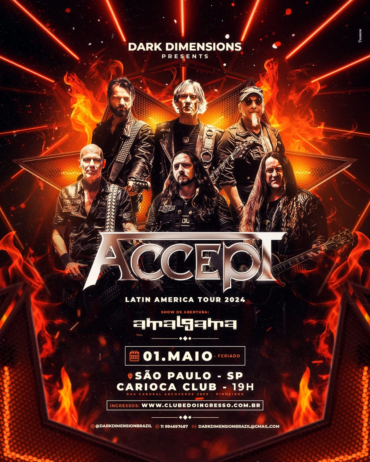No dia 1º de maio de 2024, feriado, a capital paulista será novamente palco de mais uma grande experiência para os fãs do Heavy Metal clássico. A lendária banda alemã ACCEPT está programada para incendiar o Carioca Club Pinheiros com mais um show que promete ser tão memorável quanto os outros feitos em nossa terra, só que agora com uma novidade incrível para os amantes das seis cordas: o brilhante Joel Hoekstra (Whitesnake, Trans-Siberian Orchestra, ex-Night Ranger, etc.) na guitarra, substituindo seu atual guitarrista Philip Shouse, que não poderá participar da turnê latino-americana!