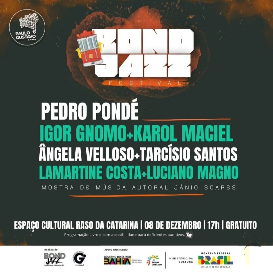 Logo em seguida, às 18h, o Bond Jazz Festival deu início a mais uma edição, trazendo ao palco os talentosos artistas Lamartine Costa e seu irmão, o renomado músico Luciano Magno. A dupla cativou o público com suas interpretações jazzísticas, que ecoaram pelo espaço cultural.