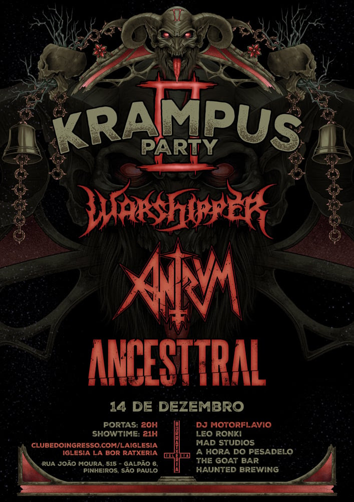 O ano de 2024 está prestes a encontrar seu ápice com a realização da 2ª Edição da Krampus Party, um evento que já se tornou sinônimo de celebração do metal e da cultura underground. Organizado pelas bandas Antrvm, Ancesttral e Warshipper, este evento promete ser a "Festa da Firma do Metal", reunindo música, entretenimento e o espírito de intercâmbio de ideias que caracteriza a cena underground.