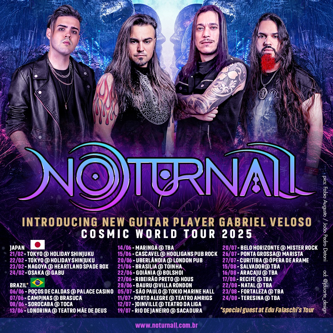 O Noturnall, um dos maiores nomes do Heavy Metal brasileiro na atualidade, continua sua impressionante "Cosmic World Tour", que já contabiliza mais de 150 datas realizadas na Europa, Oceania, América do Sul, América do Norte e América Central. Agora, a banda anuncia sua estreia no Japão, marcando a primeira incursão do grupo no continente asiático. Em fevereiro, o Noturnall se apresentará em quatro shows nas cidades de Tóquio, Nagoia e Osaka, consolidando sua presença global.